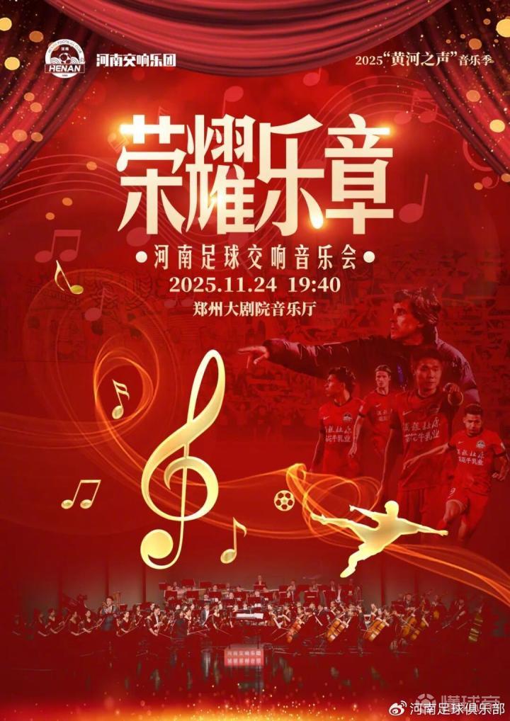 北京时间10月29日,河南队官方发布消息,河南交响乐团将与河南足球俱乐部共同呈现一场名为「荣耀乐章」的足球主题交响音乐会,门票价格从120元起售。